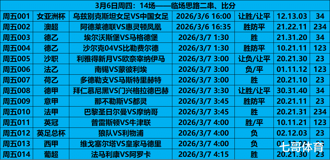 昨日赛事前瞻复盘,前瞻思路6✔3,好坏参半,003由于延期没有放入统计,部分场次临场变动也没计入统计。内推思路明确,已拿下一单,另一个方案还需等待003的结果。今天继续努力,给大家带来更精准的赛事参考。祝大家好运!!