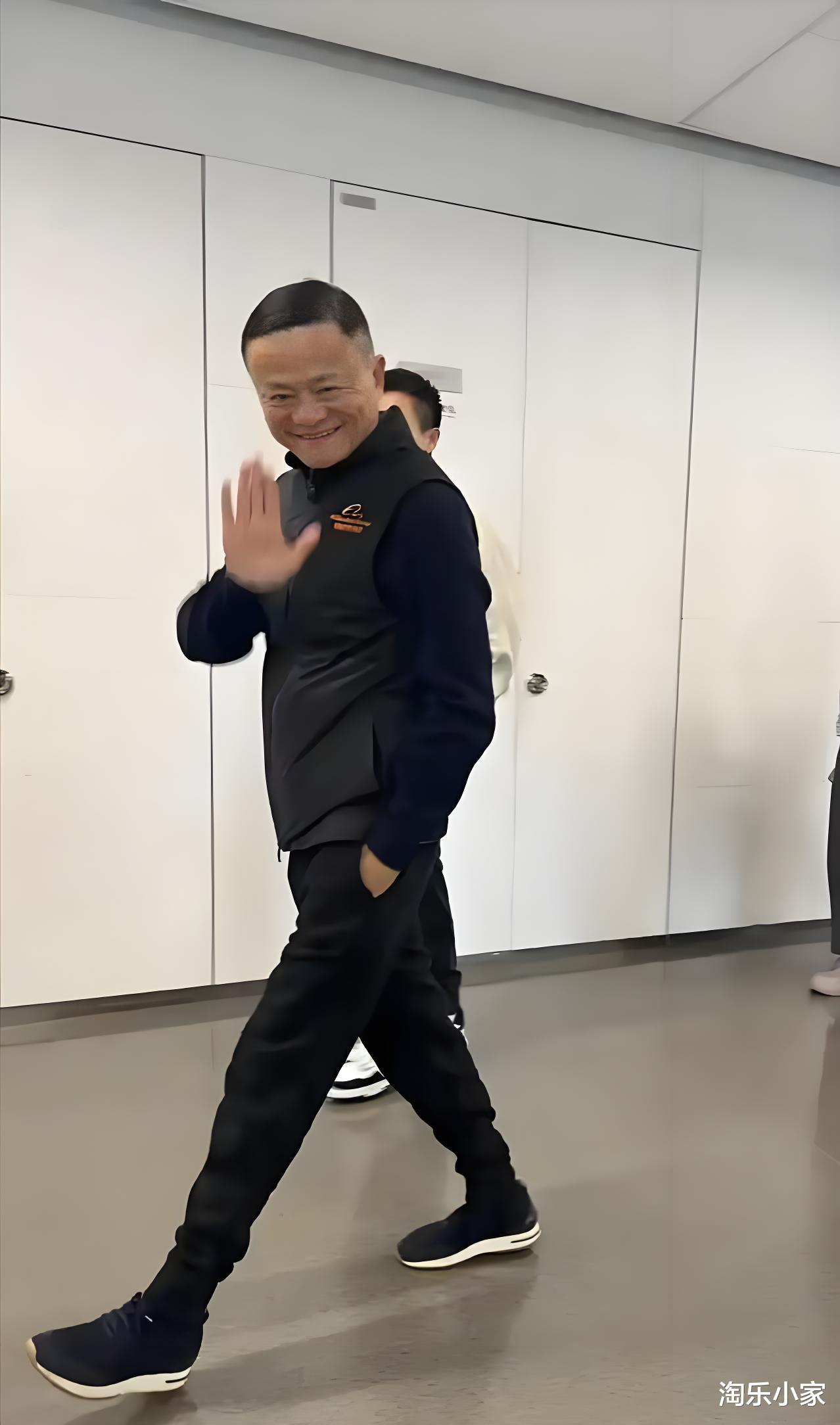 马云现在出门跟自家后院散步似的,黑夹克黑裤子配标志性布鞋,手里就差拎个保温杯。