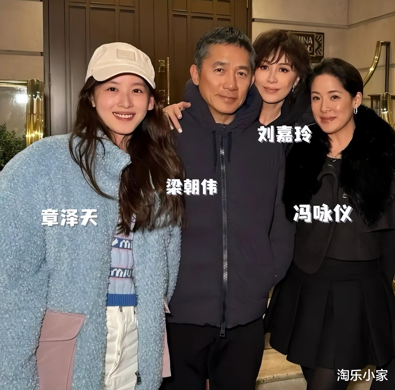 跟刘嘉玲夫妇合影时,人家两口子站台阶上霸气外露,她缩在下面笑得像粉丝见面会。