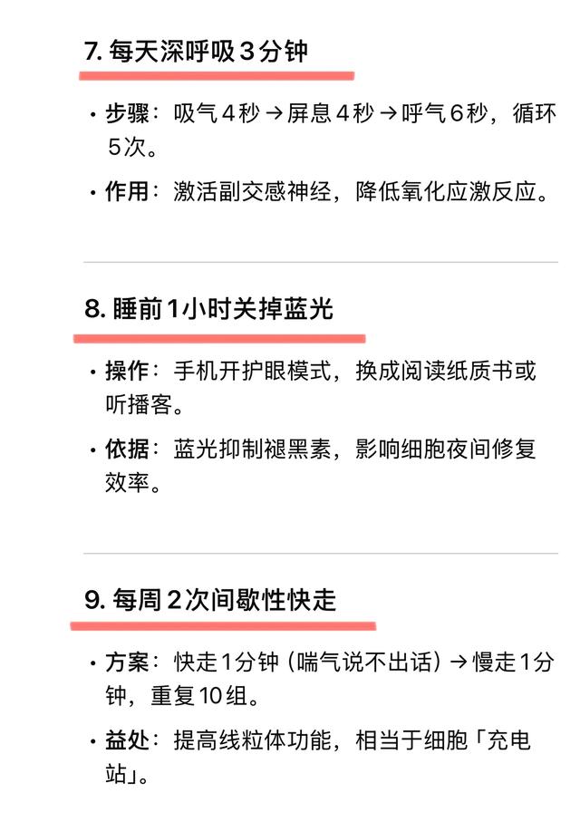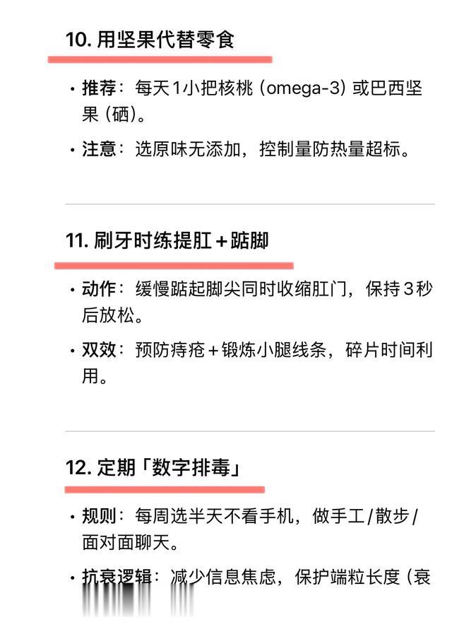 以下是deepseek推荐的15个简单实用、容易坚持的延缓衰老小习惯,科学有效且融入日常生活。Ai推荐内容,仅供参考!还