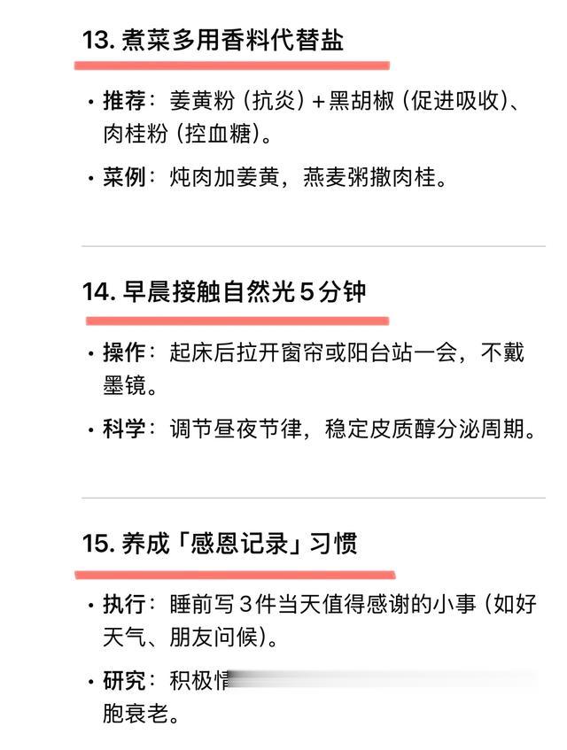 Deepseek推荐:能延缓衰老的15个生活小技巧、小习惯,记得收藏!