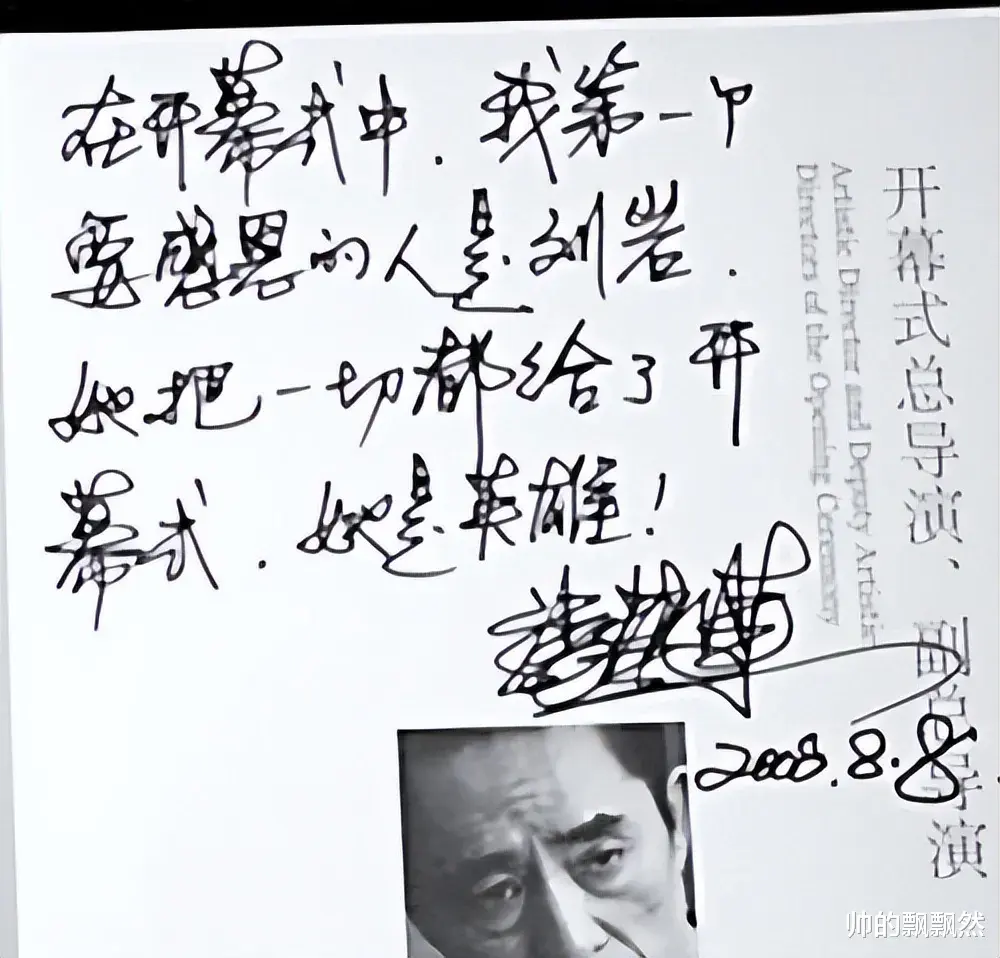 对于刘岩,张艺谋是这么说的:在开幕式中,我第一个要感恩的人是刘岩,她把一切都给了开幕式,她是英雄。