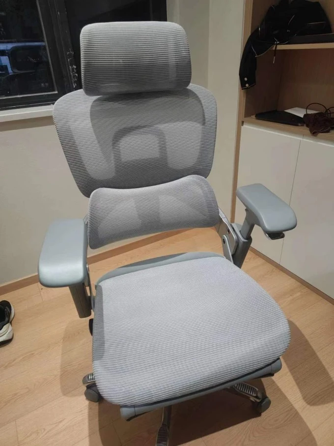 坐垫回弹适中,不会一坐就陷,也不会硬硌。后仰角度大,肩背压力能明显放下来。加上脚托,午休时整个人是放松的,适合一把椅子从办公坐到休息。