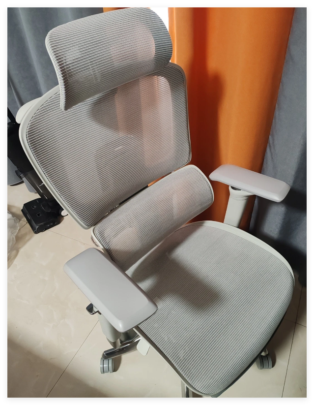 扶手、靠背、头枕都能调,日常办公够用。不过头枕支撑偏轻,大体型或特别依赖头枕的人,可能觉得没那么顶。