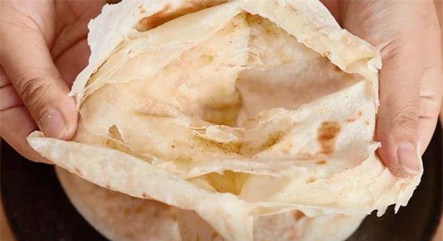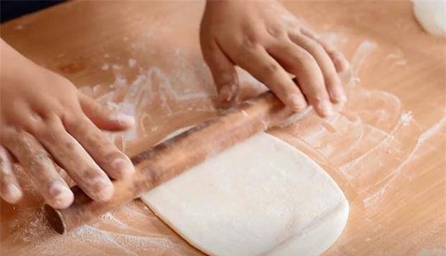8、擀饼皮的时候,要正反面交替,这样层数要一致。