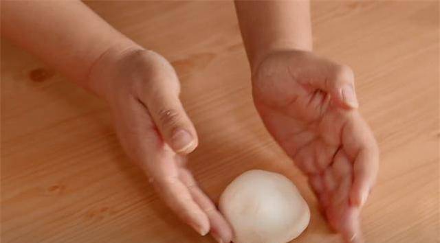 1.倒入300克面粉,面皮要软一点,每面皮加水6两,边倒边搅拌,面粉全部混合后,倒入10克玉米油润湿,揉成这样这。不要粘手,这样烤出来的蛋糕会很松软。最后再搅拌几次,揉成这样柔软不粘手的光滑面团,盖上醒面醒半小时。