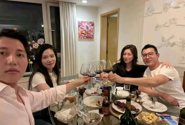 最戳心的是四人举杯时,朱珠很自然地搭着老公的肩膀,脸上的红晕不知道是酒意还是幸福。