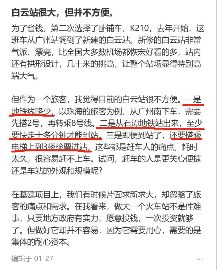 要知道,白云站可是广州最新的超级交通枢纽,理论上也靠近市中心,很多人对这个车站是寄予厚望的。