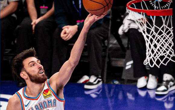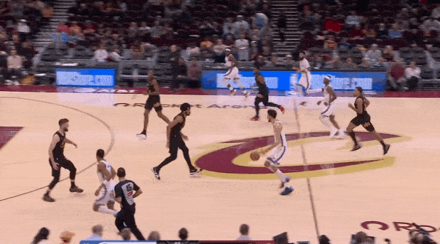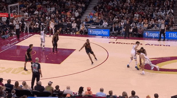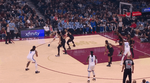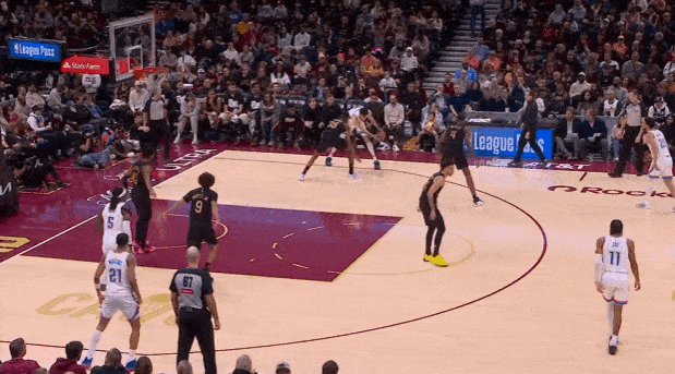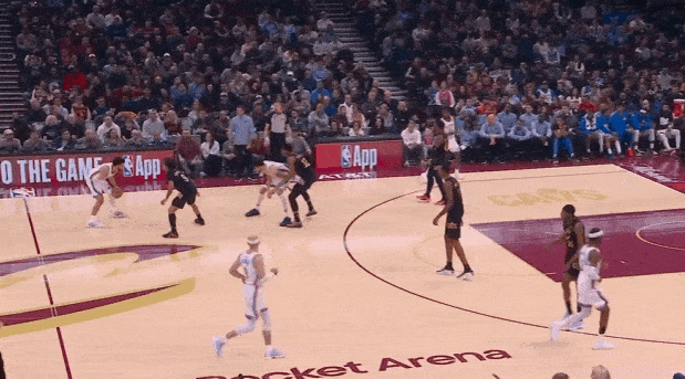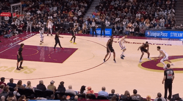 阿隆威金斯突破直杀篮下改变撕扯防守阵型后出球给外线多尔特,切特接传导球垫步调整后三分手起刀落。