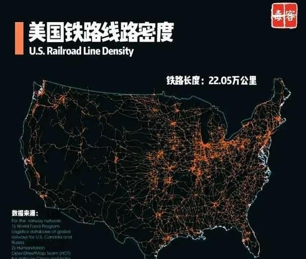 美国的铁路里程长期保持世界第一的头衔保持,他国要想超越事实上异常困难的(包括中国)