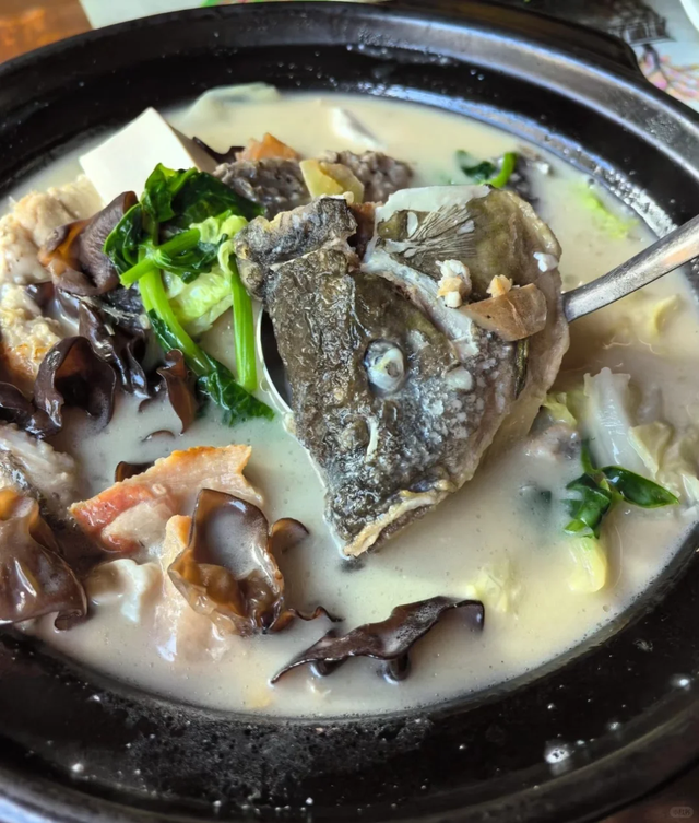 大理人做鱼哪是相当讲究的,必须用洱海鲤鱼,苍山泉水,砂锅还得是鹤庆土陶!鱼汤炖得奶白,配上火腿片、嫩豆腐,鲜得能让人连砂锅都舔干净。汪曾祺写它“汤清如水,鸡香扑鼻”,要我说,这就是云南版的“佛跳墙”。
