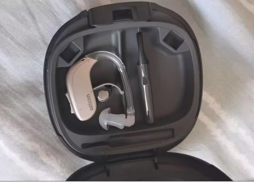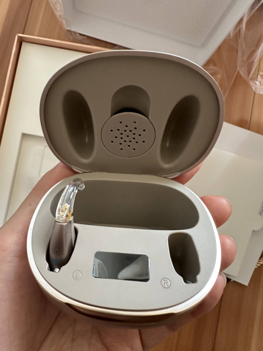 它的这款奥迪康助听器颜色接近肤色,戴上去不突兀,听钢琴声这种细腻的声音时,细节保留得还行。背后用了多频段声音还原技术,能优化不同频率的声音。但在家庭聚会这种多人说话的场景里,人声清晰度不够,偶尔会听不清某个人的话。