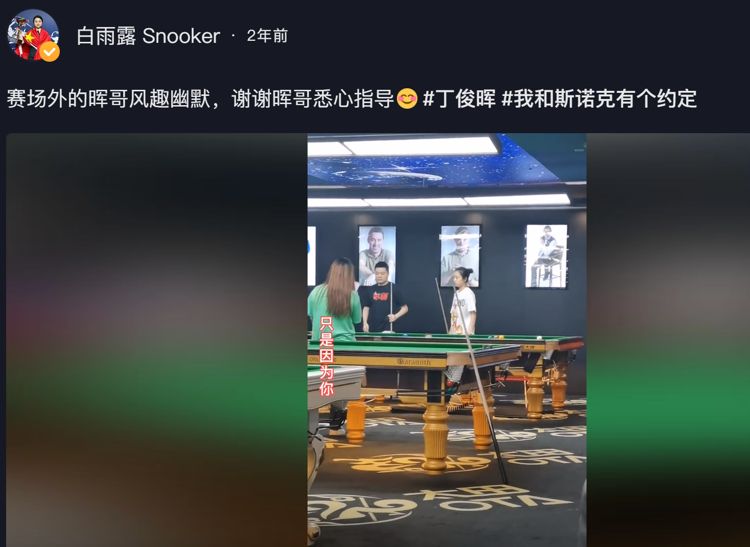 2年前,白雨露曾在社交媒体晒出了丁俊晖的指导画面,刚出道的时候,白雨露显然是无人认识的。如今,她已红遍斯诺克圈!