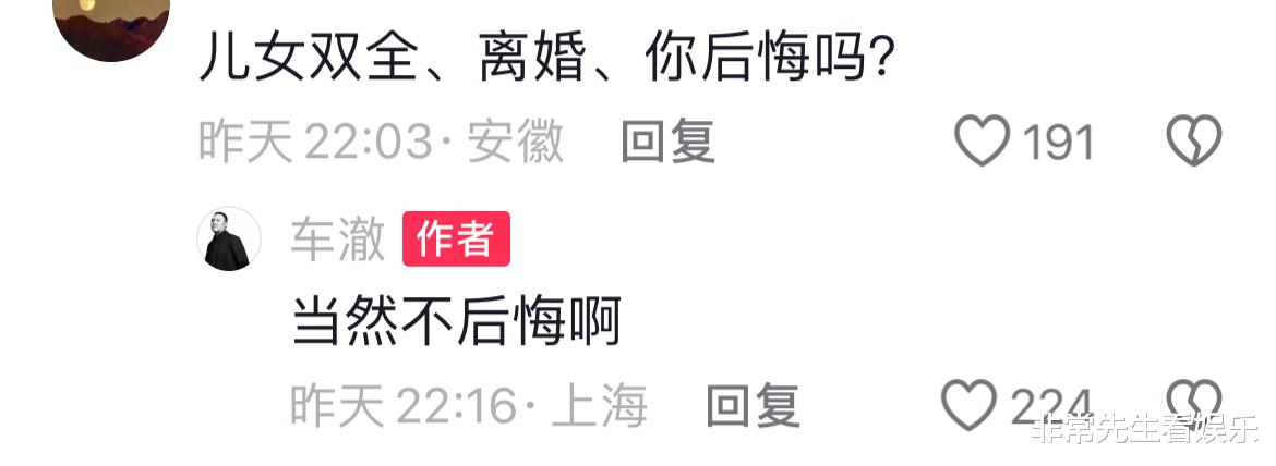 有网友在他社交账号下直接问:“儿女双全却离婚,你不后悔吗?”