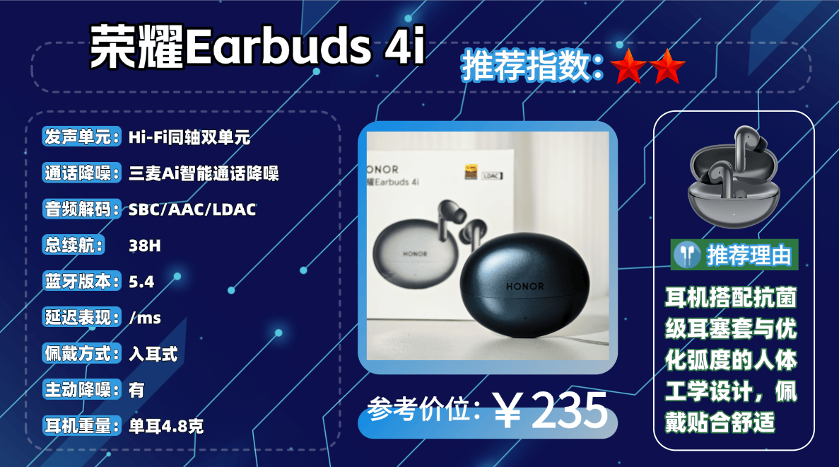七、荣 耀E arbuds 4i 蓝牙耳机