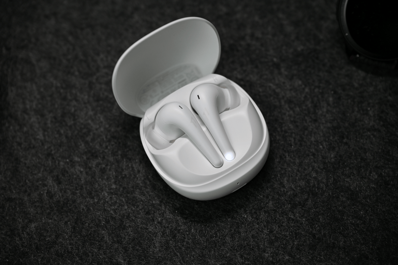 音质表现上,低频量感恰到好处,中频人声丰满,高频清晰通透,但在某些曲目中会有轻微尖锐感,整体适合流行和电子音乐。耳机支持4种EQ预设模式,也可在App内自定义音效。蓝牙5.3保证了连接稳定性和低延迟体验。续航表现也不错,单次可用9.5小时(降噪关闭),加上充电盒总续航可达36小时,支持快充,5分钟充电即可听2小时。