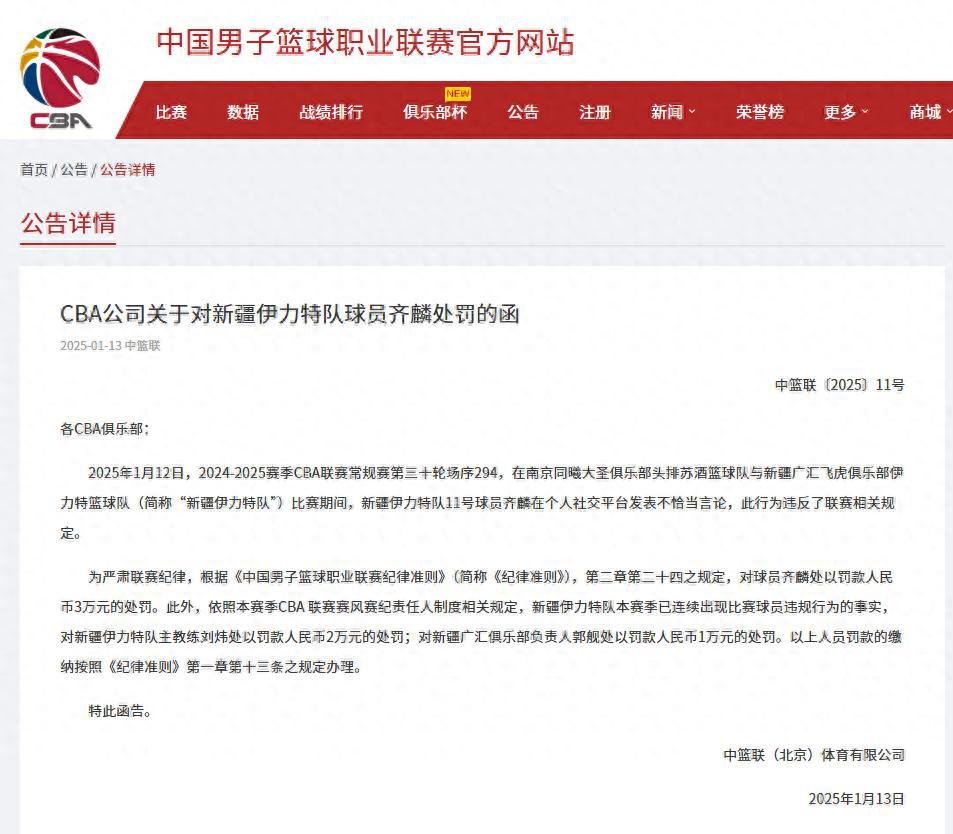 在CBA这个篮球江湖里,齐麟的“39”事件无疑是个大新闻。一个简单的数字,竟然引发了一场价值6万元的罚单风波。齐麟在比赛间隙,因不满裁判判罚,在社交平台上发了个“39”,结果被CBA公司盯上,罚款3万元,连带少帅刘炜和球队负责人郭舰也被罚款。这个事件不仅让人感叹社交媒体的威力,也让我们重新审视CBA的裁判权威和处罚机制。到底是齐麟的冲动,还是CBA的过度反应?让我们一探究竟。