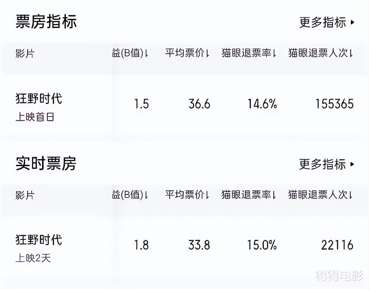 而结果就是《狂野时代》退票率高达15%,这也预示着未来的票房肯定不会太好。