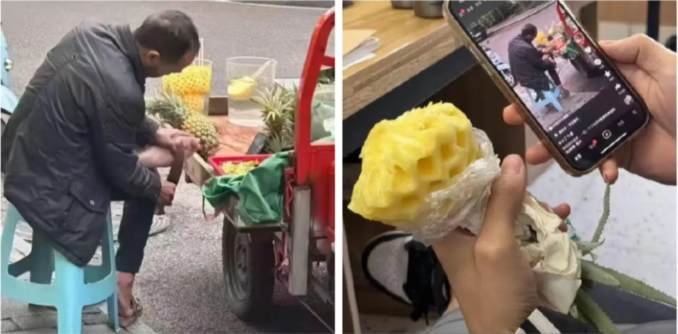 恶心真相曝光:公厕水+脏刀+徒手抓有网友爆料,某些路边摊菠萝的加工过程极其离谱: