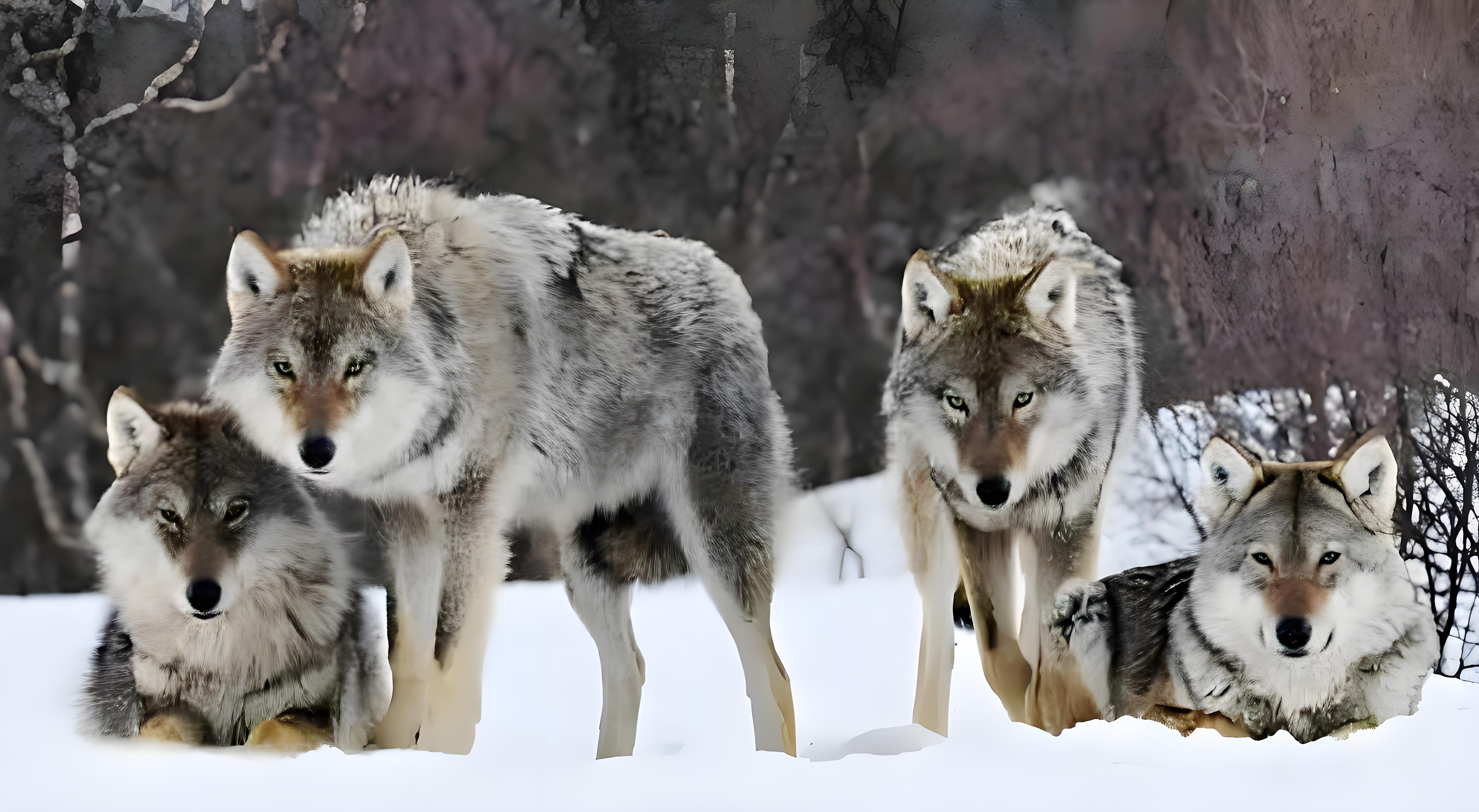 不一会儿,8只狼钻出松林,嘴里叼着树枝,分别放到汽车两个后轮下面。我们简直不敢相信自己的眼睛!这些狼的意思是想用树枝帮我们垫起轮胎,让我们的车开出雪窝。