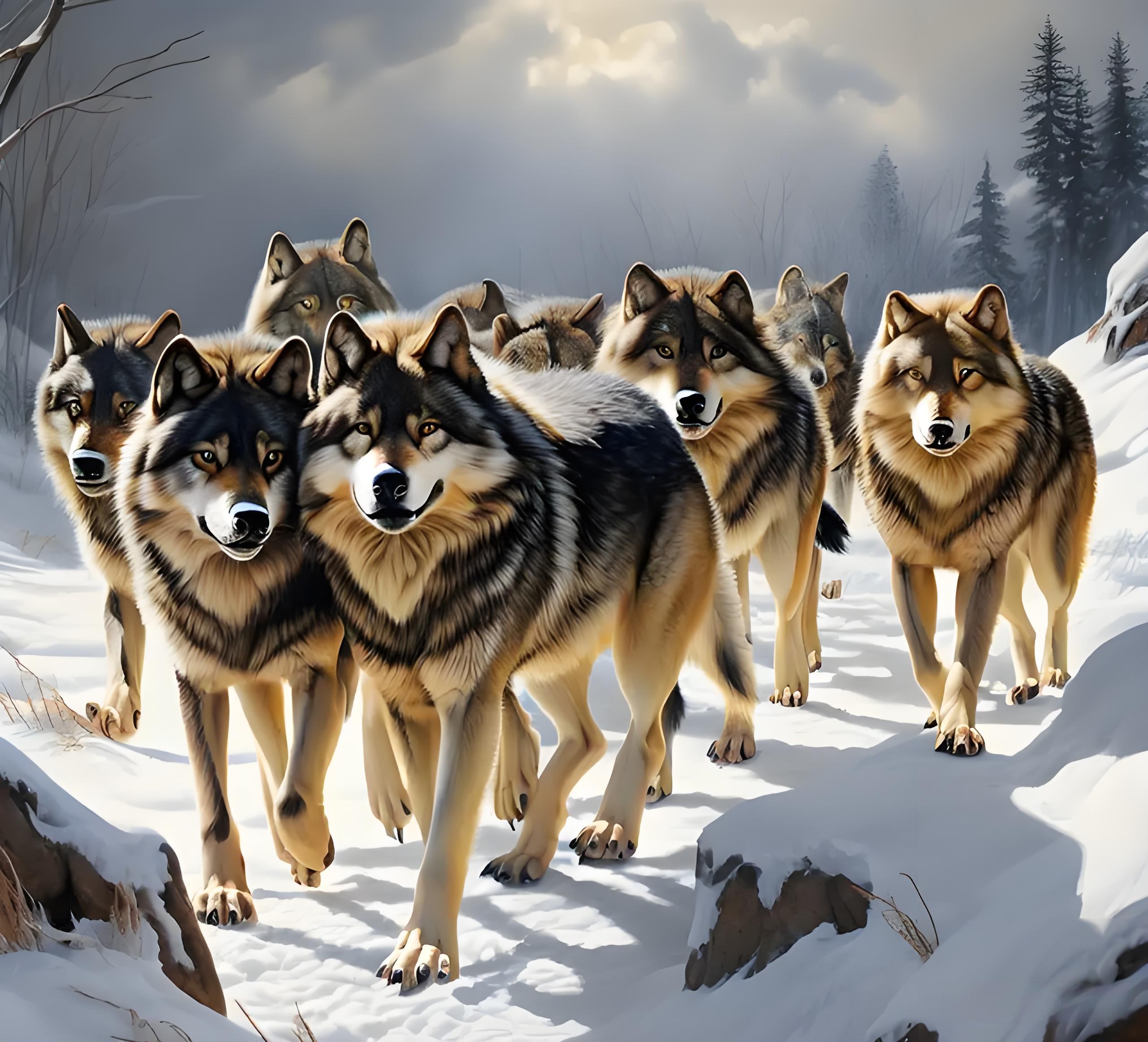 接着,8只狼一起钻到车底,但见汽车两侧积雪飞扬。我眼里滚动着泪花,大呼小王:“狼帮我们扒雪呢,赶快发动车。”