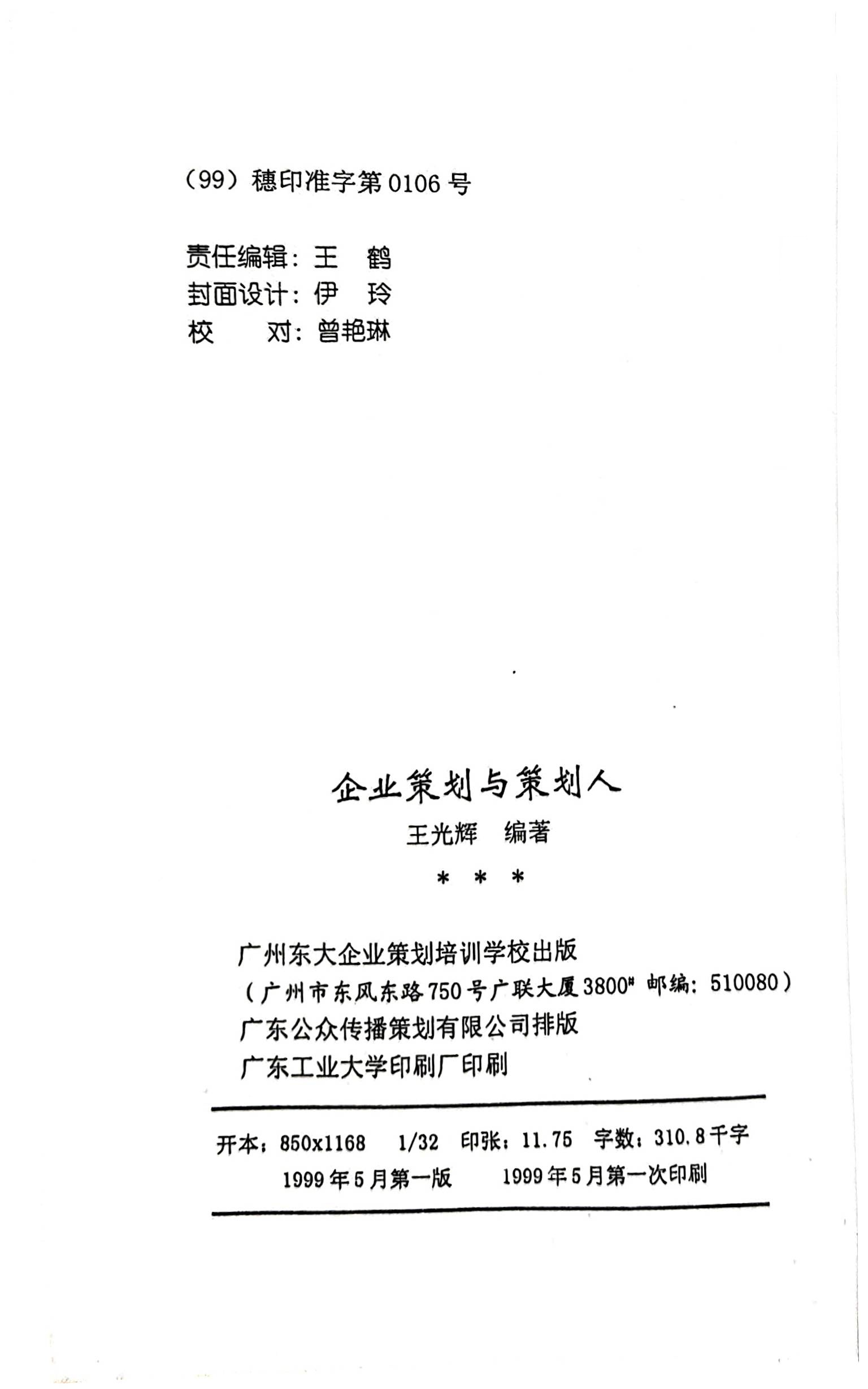 《企业策划理论与实务》雏形时的准印证号