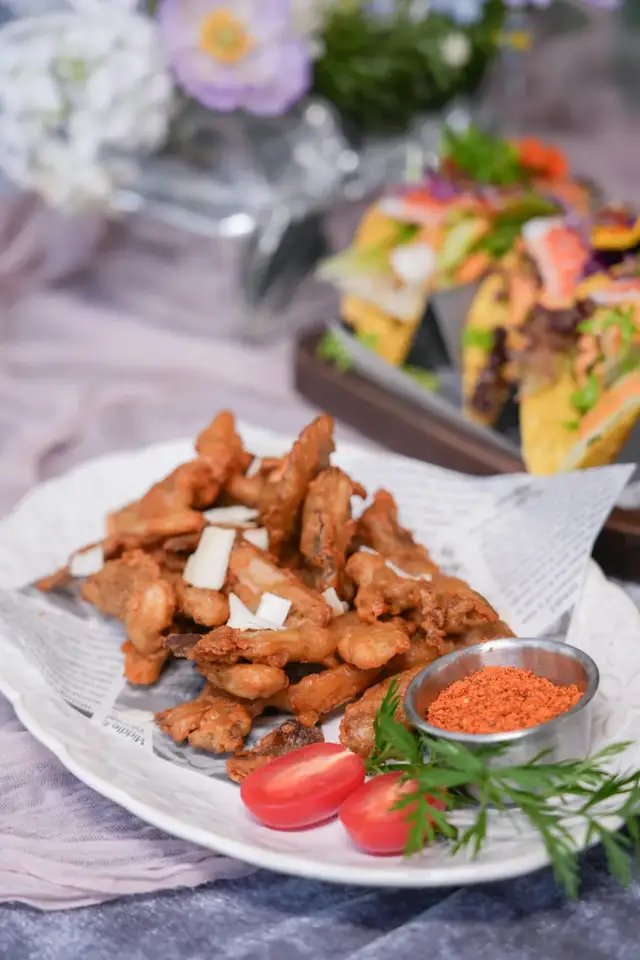 酥脆平菇,是那种看似平常但停不下筷的菜。脆壳薄,菇本身鲜,带一点辣干料。这个真的也是这里出品的一个亮点,就是不拘泥于传统西餐就只能是那种概念里的,却又水土不服。