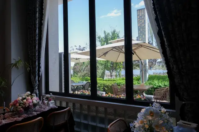 中间这一段,夜阑刚好在。而且它把这件事做得很完整——湖、落地窗、外摆、绿植、鲜花、包间布置,构成一套别人不太容易复制的东西。
