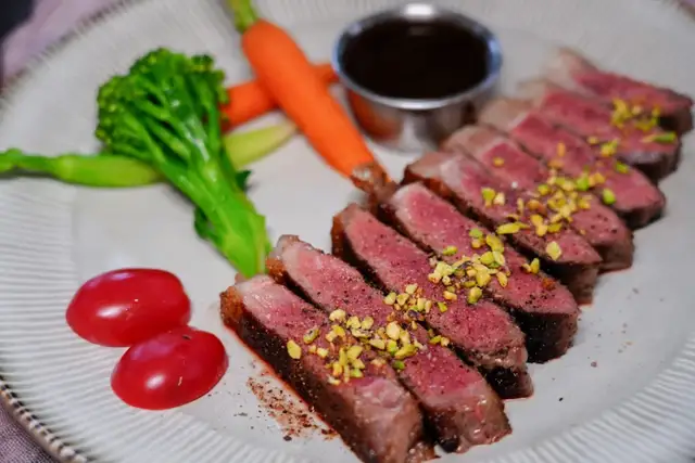 几个人分一份刚好,7分熟切下去有汁,前阵子专门去上海选了比之前价格更贵的食材,肉质和口感自然就立马又是一种体验。