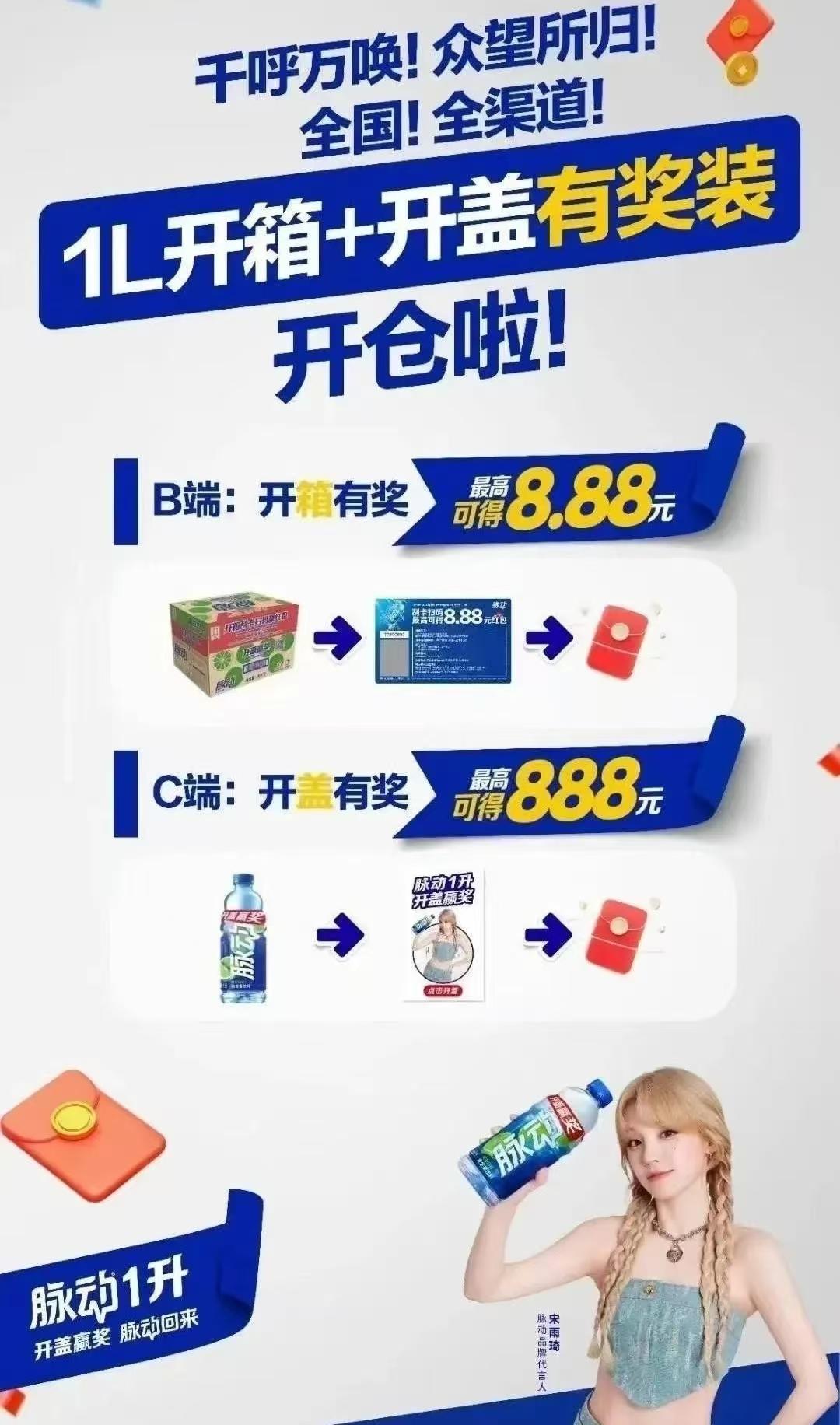 最近,不少网友晒出自己“随手一拧,红包到账”的神奇经历——买瓶脉动,开盖扫码,2.88元、4.88元甚至888元微信红包直接到账!这可不是段子,而是脉动正在全国火热进行的 “1L装开盖赢奖”活动。今天我们就来扒一扒:脉动是怎么用“一物一码”玩转开盖有奖的?消费者能薅到什么羊毛?品牌又靠它实现了哪些营销突破?