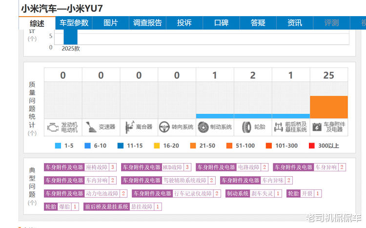 此前,在车质网 2025年9月发布的“中国汽车产品质量表现研究(AQR)”中,小米YU7曾斩获高端纯电动车组质量体验第一名。