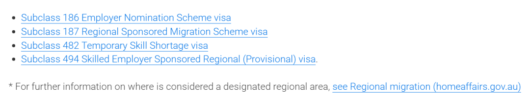191签证临时技能短缺雇主担保类:;