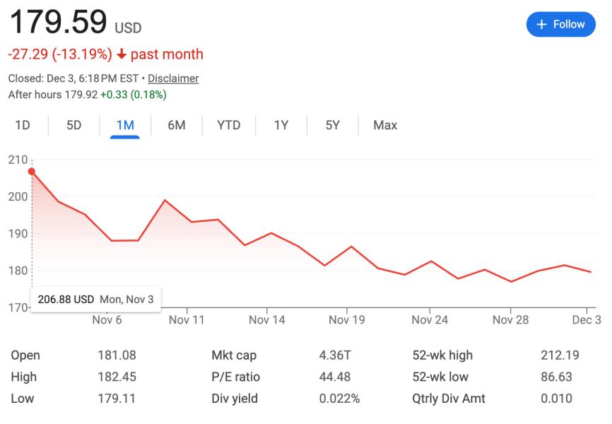 11月英伟达股价跌去15%的同时,谷歌拿到了“熹妃回宫”的剧本,股价涨幅超过13%。