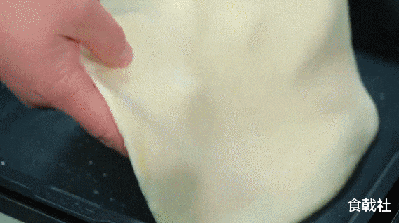 5.想要咱们的油饼层多,下面的手法是关键,用刀。在面饼上切一刀,像视频中这样,然后用手给它卷起来。边缘和底部都收紧,防止油酥漏出。