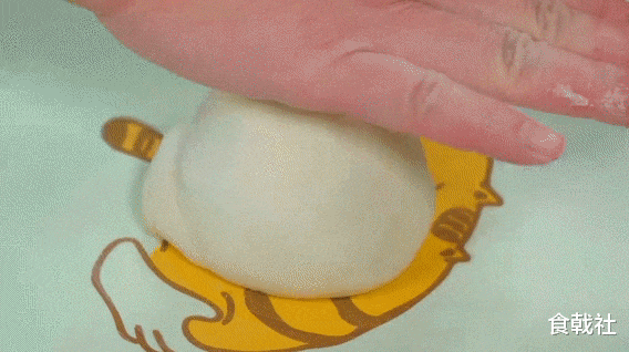 6.收好口的饼胚大头朝下,用手把面团按扁。擀饼的时候两面都要擀,这样层次才均匀。也不用擀的太薄,不然烙的时候不鼓泡。
