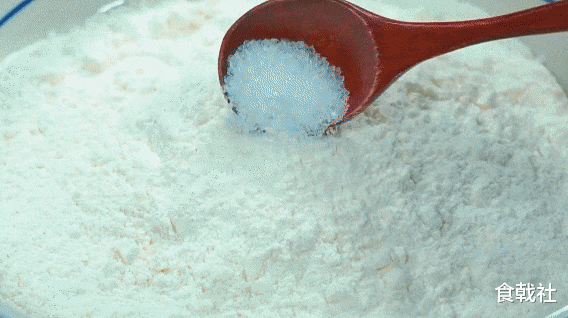 以普通喝汤的瓷勺为例,一勺大约5克面粉,放5勺,半勺盐约两克,倒入烧好的热油约30克,搅拌均匀。