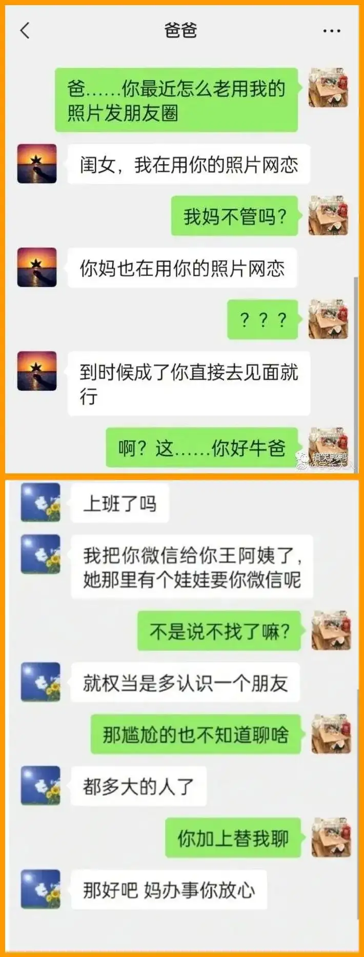 1、妈,你当年看上我爸什么了