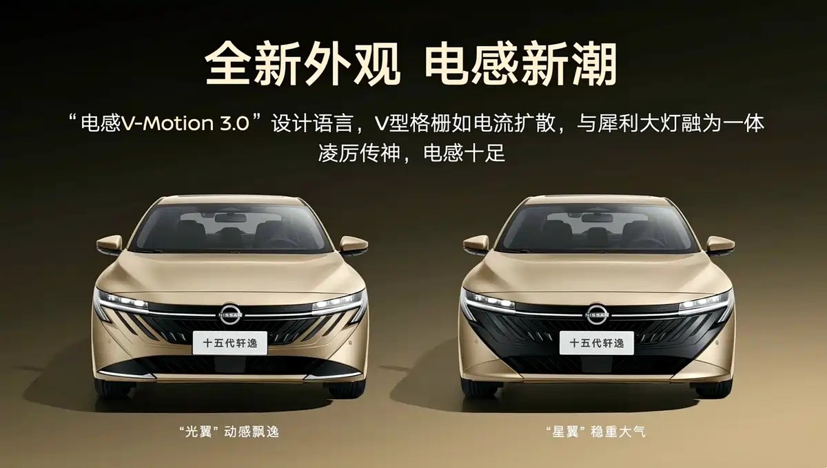 设计上,十五代轩逸明显更加年轻、前卫,新车提供了光翼、星翼双前脸轮廓,2套设计都配备了贯穿灯带,看起来电感十足,非常像电车,而主要的区别是中网黑色装饰的面积有所不同,迎合不同群体的审美,扩大受众面。
