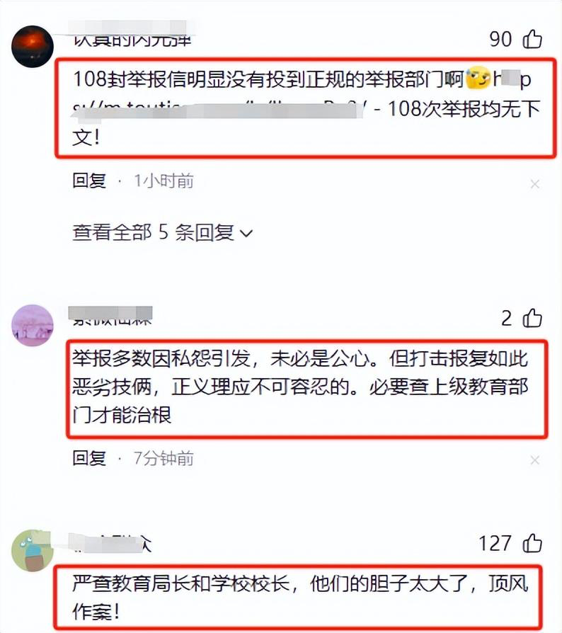 “不是太清楚?”对这么严重的事件,你们怎么能不清楚呢?网友们的评论几乎刷屏:“连举报个校长都这么难,难怪没人愿意写举报信了!”现实让人寒心,举报信在这个社会似乎已经失去了它应有的效力。网友们纷纷感叹:“实名举报的唯一出路,可能就是上网曝光。”真相能否还她一个公道?