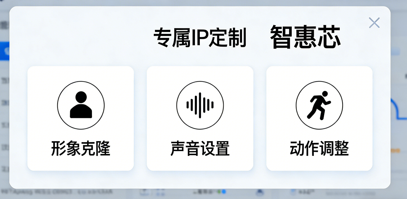 专属IP定制,打造品牌差异化标签品牌辨识度是营销的核心竞争力。智惠芯支持3分钟快速定制专属数字人,只需提供真人视频,即可精准克隆企业CEO、核心员工的形象、声音与动作,打造独一无二的品牌IP。无论是高管的产品发布会演讲、创始人的品牌故事分享,还是员工的专业知识讲解,数字人都能完美复刻,既避免了真人出镜的高频成本与时间限制,又能通过统一的品牌形象深化用户认知,让品牌发声更具记忆点。