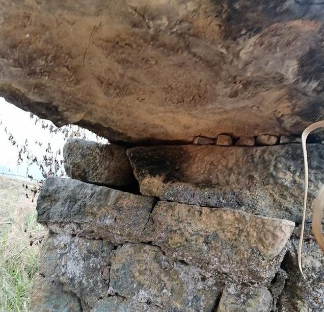 桥面是两块巨石拼接直行,巨石长有两米,两块巨石拼接直行,宽度也仅有0.5米,也就是说古桥长4米左右。桥面在行人脚板的摩擦而岁月的洗礼下变得非常的光滑,此时不下雨,看着桥面有点反光是不是感到疑惑?其实不是湿润而发光,而是夕阳照耀下而反光。
