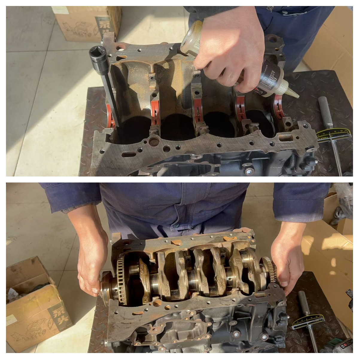 洗干净并打上进口胶水,安装好大小油底壳和机油泵……