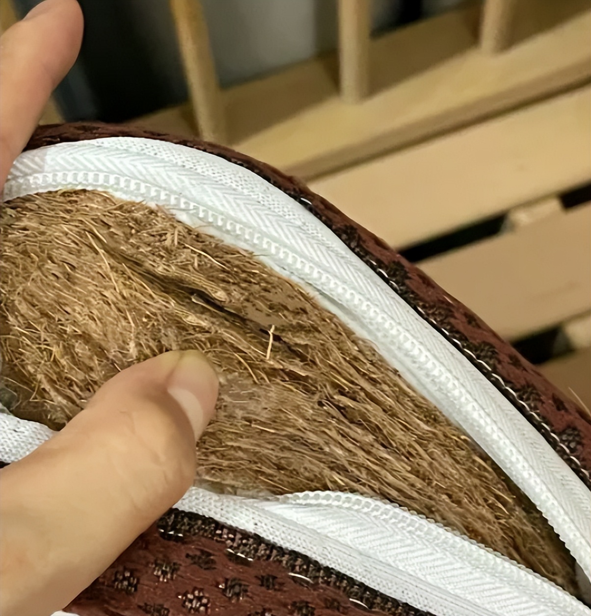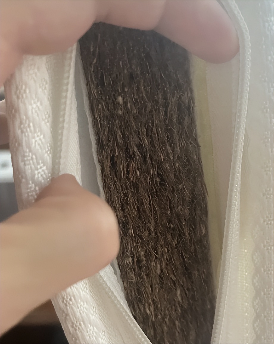 之前我就在网上看过类似的报告,说是有不良的商家为了减少成本,椰棕床垫都加入了胶水,