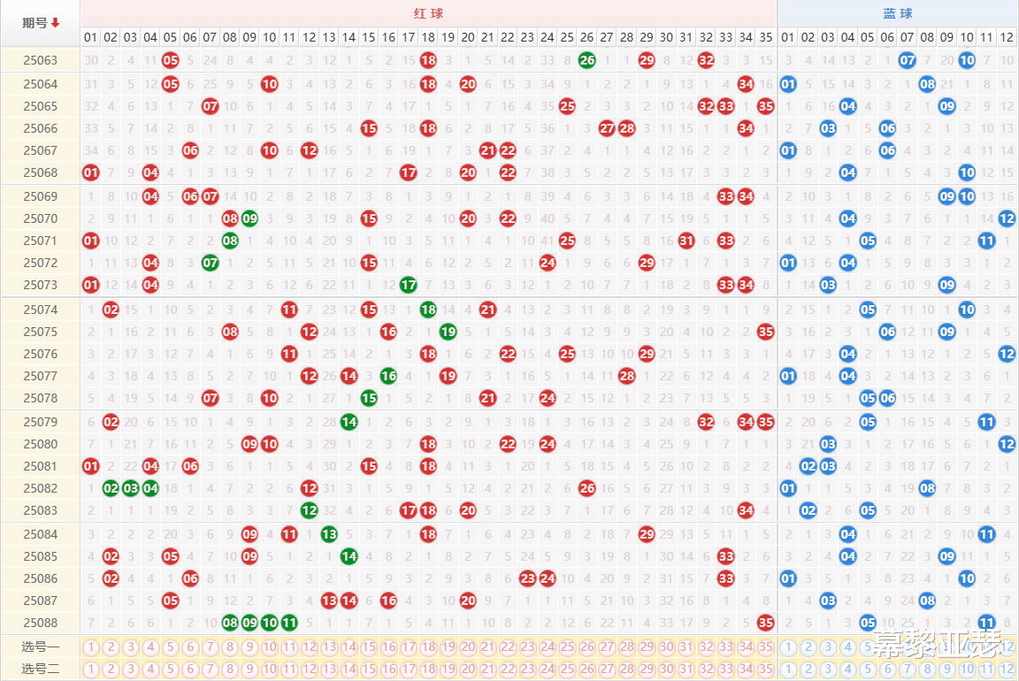 红球35:基本走势图和周三走势图,本期无出号指向,一般情况下本期出号的机会偏小。