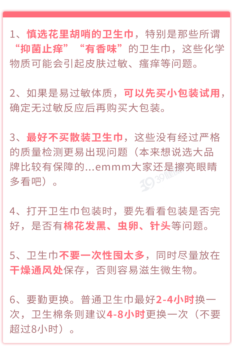 至于普通卫生巾,大家购买和使用时记住这几点就好了:
