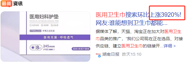 面对普通卫生巾纷纷塌房的现状,不少人开始搜索和抢购医用级卫生巾。这个景象不免让人联想到当年抢口罩的时候......
