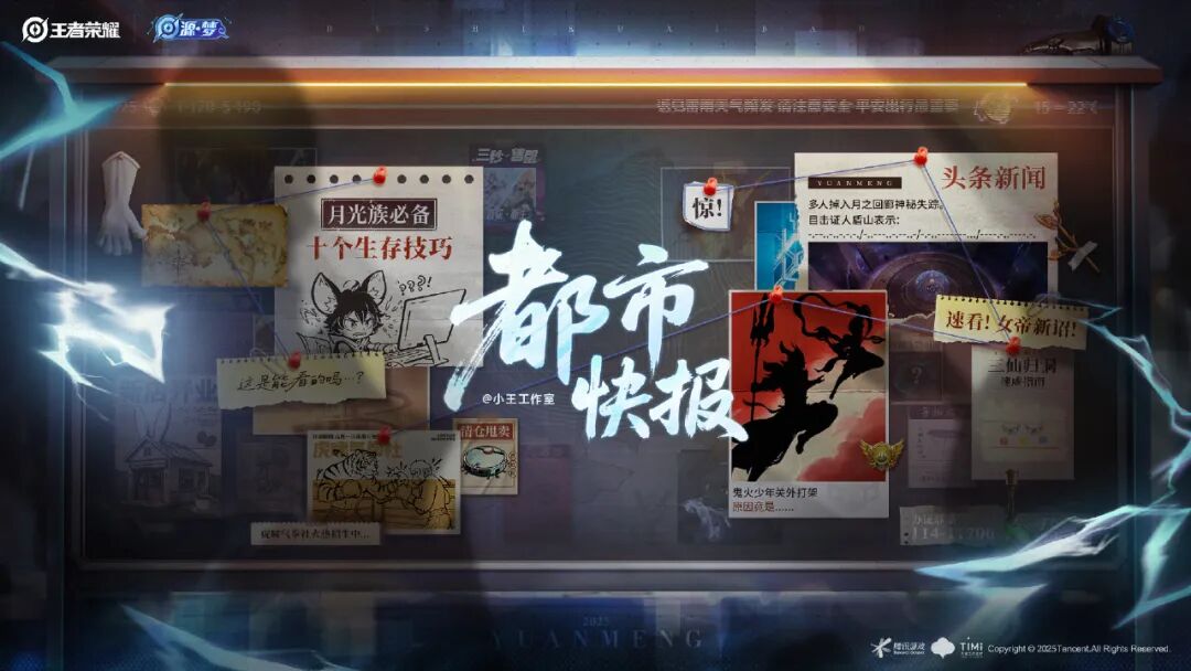 小酒简单圈了几个线索,但最关键的,应该还是目击证人盾山的那段摩斯密码。那段摩斯密码,你可以通过在线翻译器去进行翻译。最终的答案是【太乙司空】。所以,基本确定新一轮的源梦皮肤是太乙真人和司空震的。确定英雄之后,再去看都市快报中的线索,好像也理所当然了。比如右下角的绿色瓶子是太乙真人原皮肤手中的。鬼火少年关外打架,看剪影是哪吒和杨戬,也跟太乙真人有关,边上还有太乙真人被动技能的图标。而且,左右两侧有两个阴影,左侧是司空震,还有闪电元素。右侧是太乙真人,这个稍微有点不明显。这算是太乙真人的首款高级皮肤了,期待一下。