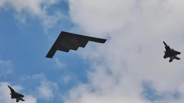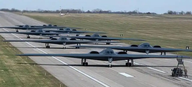 至少七架B-2隐形轰炸机从美国本土的怀特曼空军基地起飞,经过长途飞行,最终抵达印度洋上的迭戈加西亚岛。B-2轰炸机具备洲际打击能力,是一种战略威慑武器。