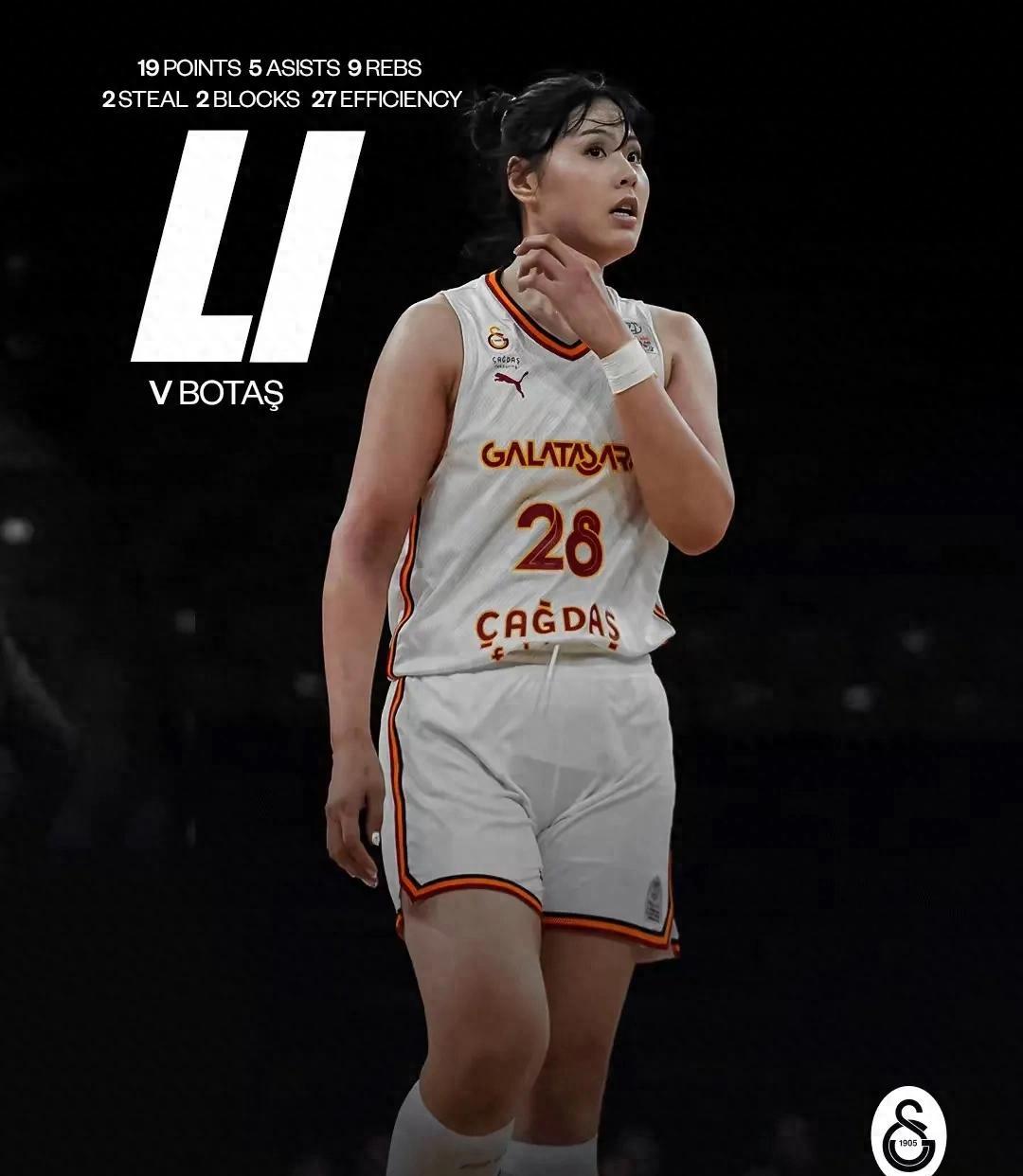 李月汝,这个名字对于中国篮球迷来说,不再仅仅是一位年轻的球员,更象征着中国女篮在国际赛场上冉冉升起的新星。2025年3月2日凌晨,土耳其女篮超级联赛的赛场上,李月汝用一场近乎完美的表现,再次证明了自己的实力和潜力。效力于加拉塔萨雷女篮的她,带领球队以80-67战胜博塔斯女篮,而她本人则砍下19分9篮板5助攻2抢断2盖帽的全面数据,五项主要数据均为全队最高,正负值更是达到了+18,毫无疑问地成为了本场比赛的MVP。