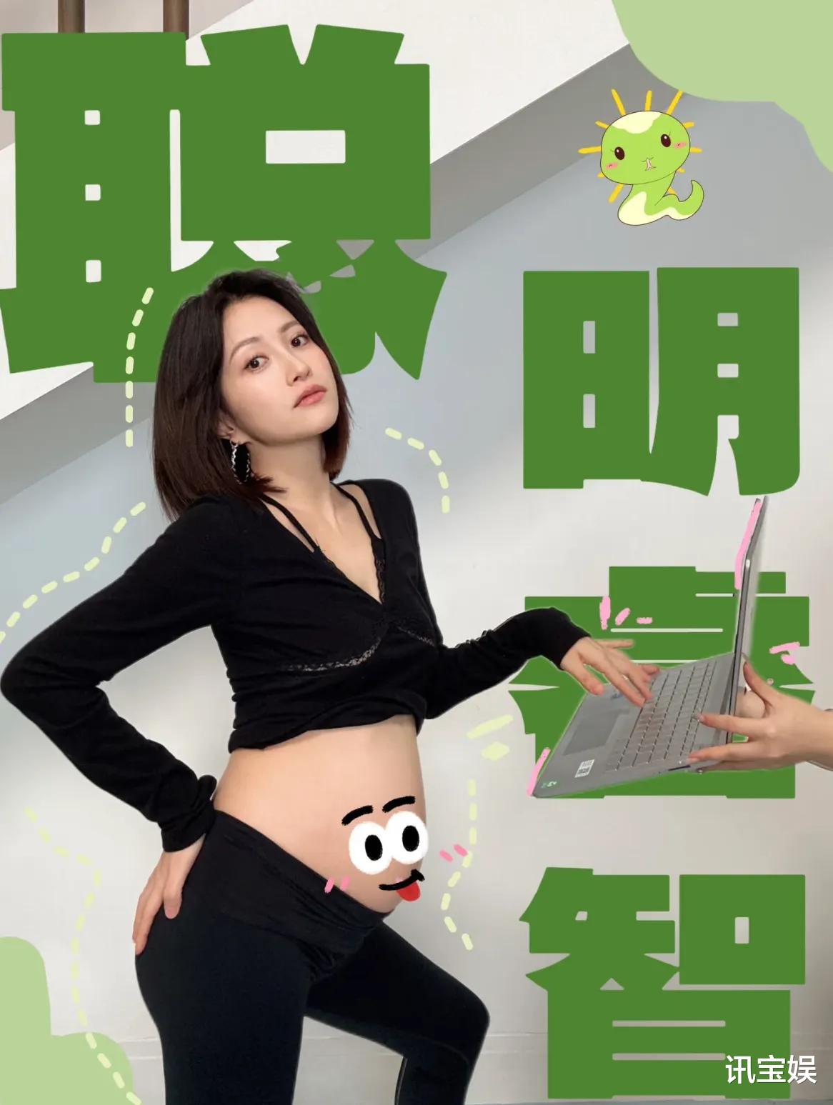 包文婧挺着孕肚,在肚子面前放着一本书,寓意着宝宝“博览群书”。